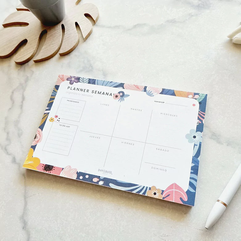 Descubrí el Planner Semanal Block Flowers Blue, la herramienta perfecta para mantener tus actividades y pendientes siempre organizados con un toque de frescura y diseño floral.